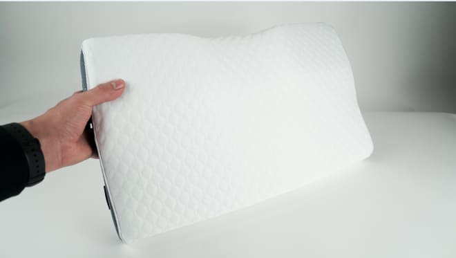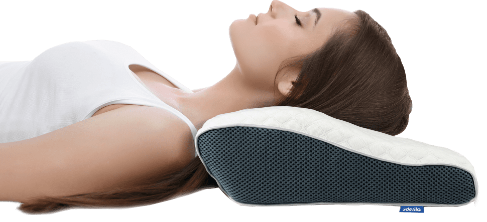 Lay your Derila so that the thinner side of the pillow is facing your head and neck. This will allow you to easily rest your head right into the contour of your pillow.